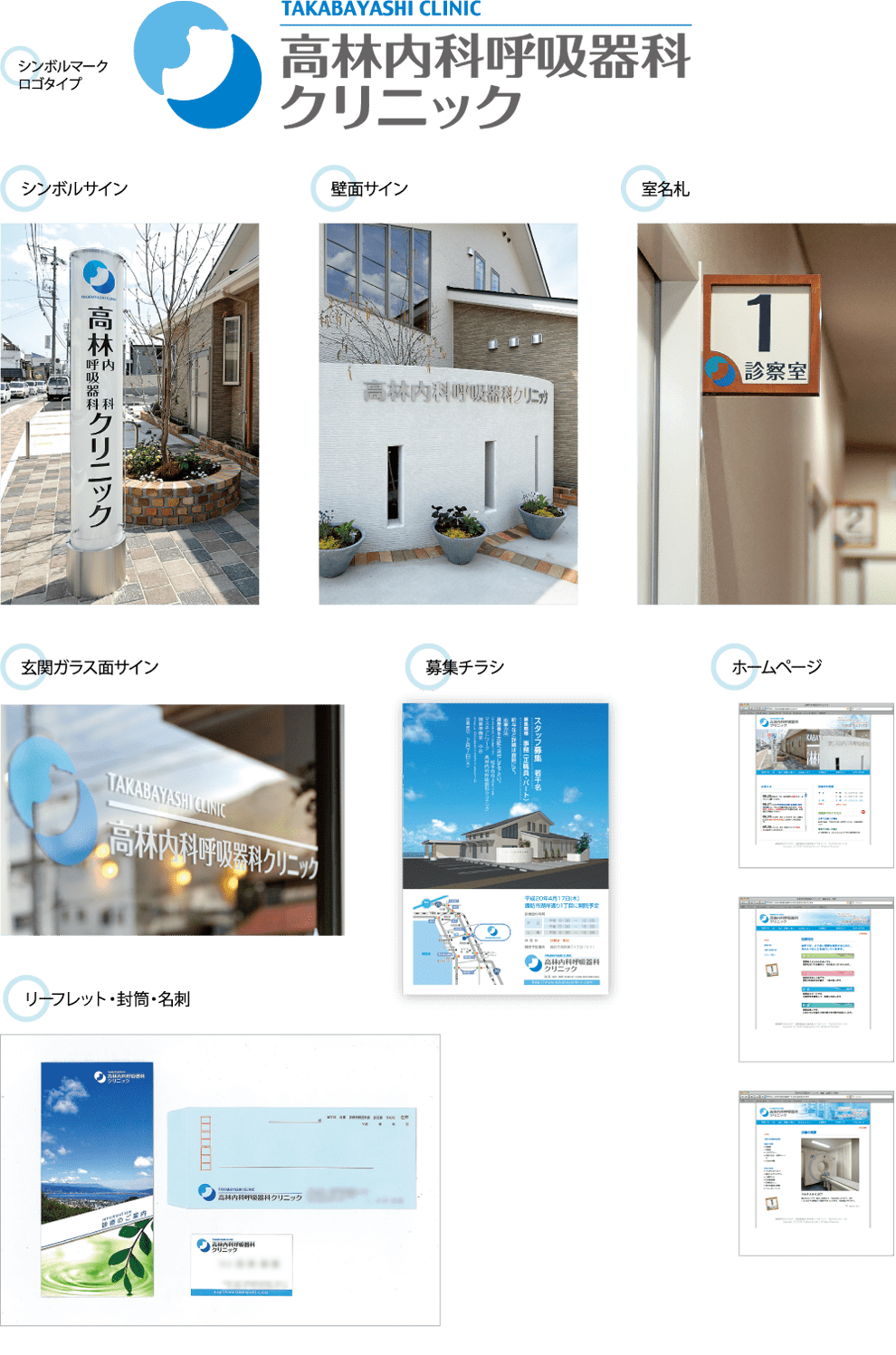 デザイン計画のメディカルデザインサポートは、シンボルマークをはじめとした様々なツールを総合的にデザイン展開していくことで、医院のイメージづくりをより明確で印象的にするお手伝いをしています。